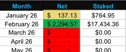 • Cricket Betting: +$1,200. (A massive outlier here: I caught a $500 win at $51 odds thanks to the Italians in the World Cup).